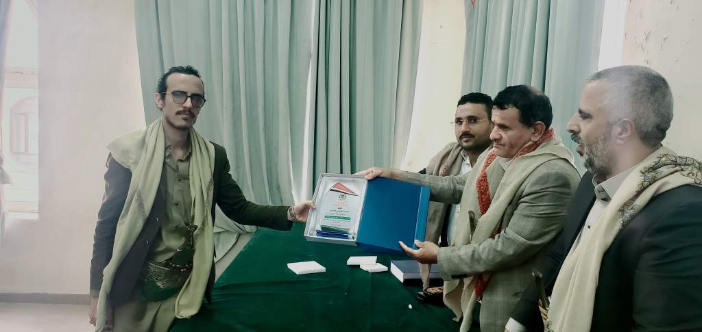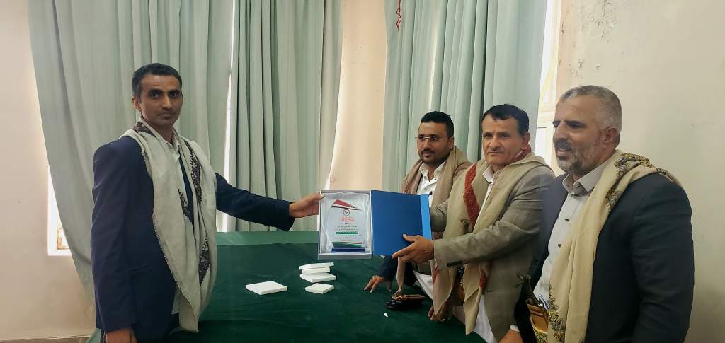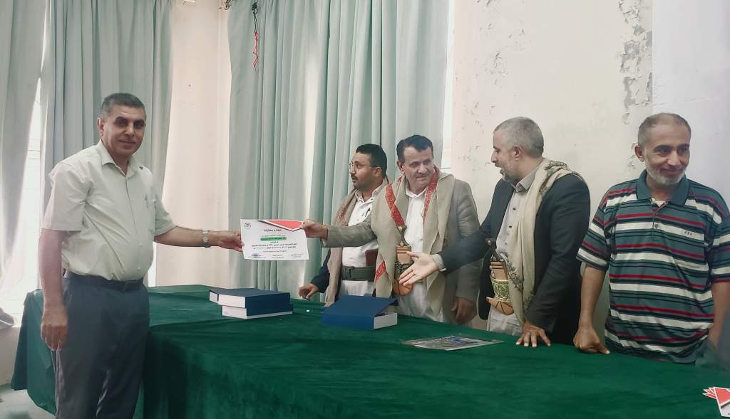 وفي لفتة تقديرية، تم تكريم المدرب مجيب الحكيمي بدرع العمل التنموي، تقديراً لإسهاماته في تنمية القدرات المؤسسية، وجهوده في تقديم محتوى تدريبي نوعي يُراعي خصوصيات العمل التعاوني الزراعي ومتطلباته في السياق اليمني.