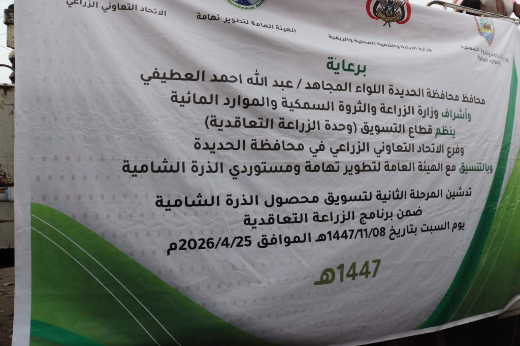 دشن محافظ محافظة الحديدة اللواء عبدالله عطيفي، السبت، المرحلة الثانية من تسويق محصول الذرة الشامية بمديرية الجراحي، بكمية إجمالية بلغت 140 طناً، نفذتها جمعية الجراحي التعاونية الزراعية متعددة الأغراض، بإشراف مباشر من وزارة الزراعة والثروة السمكية والموارد المائية عبر وحدة الزراعة التعاقدية، وبالتنسيق مع فرع الاتحاد التعاوني الزراعي بالمحافظة وهيئة تطوير تهامة، ضمن مشروع الزراعة التعاقدية.
