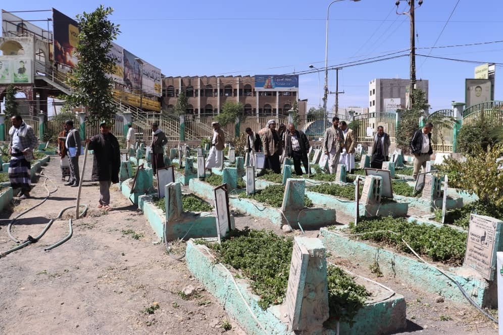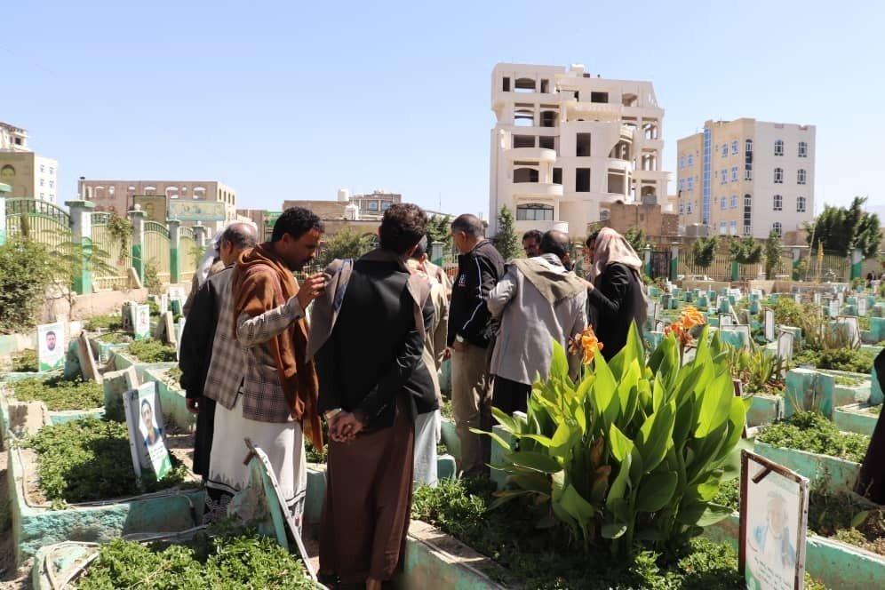 موظفو الإتحاد التعاوني الزراعي يزورون روضة الشهداء بصنعاء